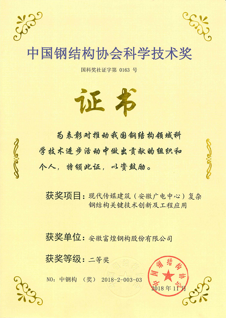 2018中国钢结构协会科学手艺二等奖